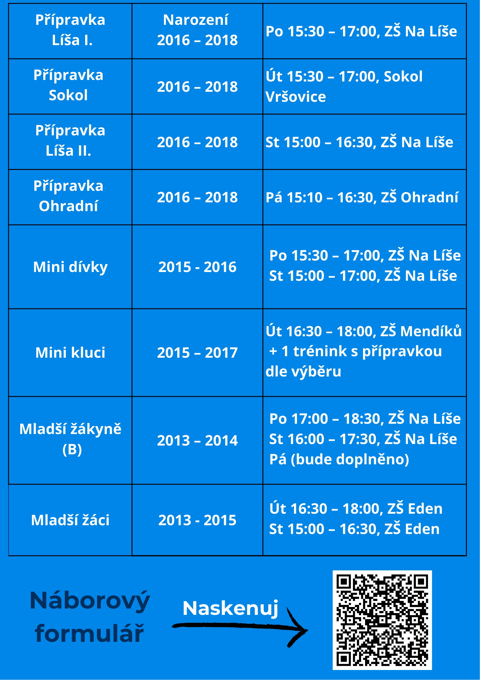 Od září 2025 nabíráme nové členy do přípravek a družstev mládeže.