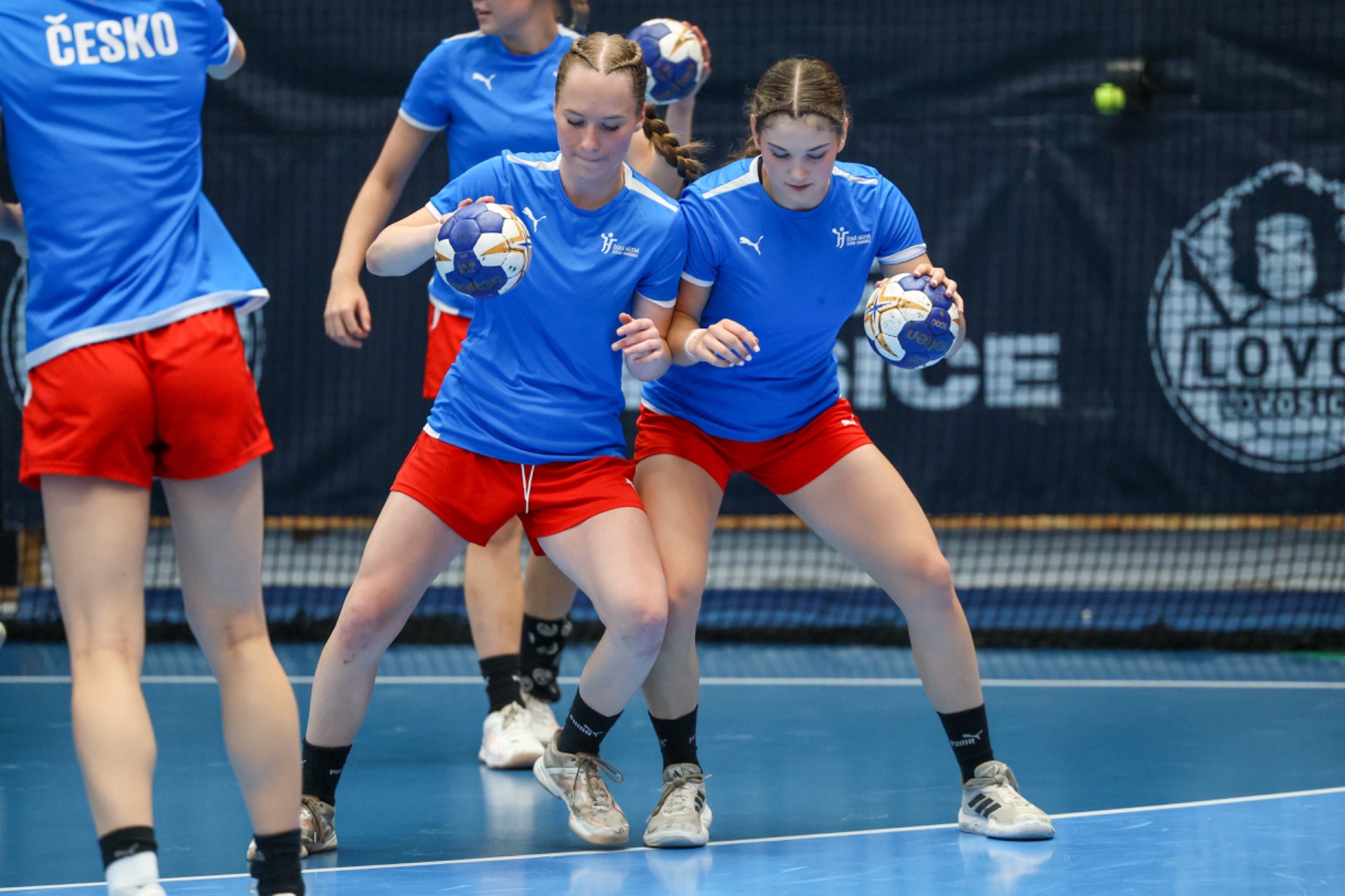 Na obrázku níže je české reprezentační družstvo dorostenek v házené. Osoba s míčem v pozadí by mohla být naše házenkářka Anežka Francová z T.J. Sokol Kobylisy II.