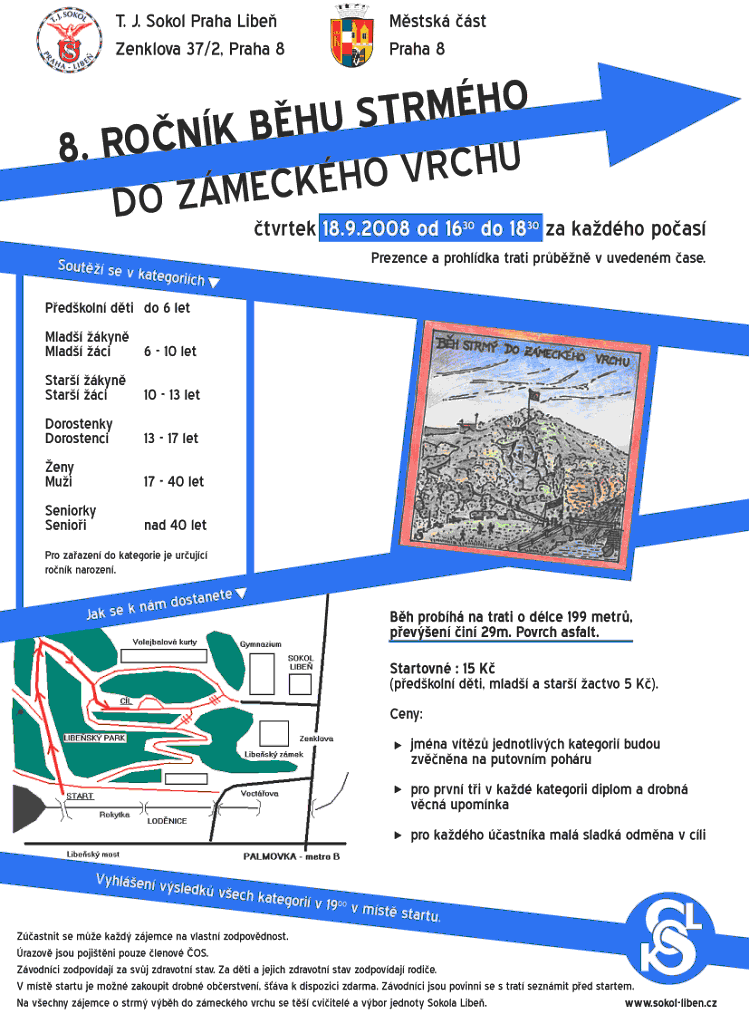 Jako každý rok i letos se ve čtvrtek 18. září uskuteční již 8. ročník závodu „Běh strmý do zámeckého vrchu“, pořádaný Sokolem Praha-Libeň za podpory MČ Praha 8.